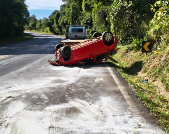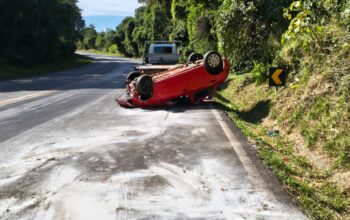 Saída de pista seguida de capotamento é registrada na BR-282, em Herval d’Oeste
