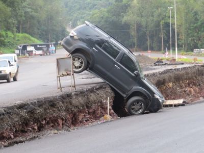 30/03/2015 Uma cena na manhã desta segunda-feira (30) chamou a atenção dos motoristas que passaram cedo pelo trevo do Chocodinho na BR-282 em Joaçaba. Uma caminhonete importada da Toyota (Hilux SRV) estava pendurada no desnível da pista que está em obras. O veículo com placas de Joaçaba não sofreu grandes [Leia Mais]