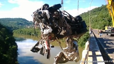 19/03/2015 Uma empresa especializada em operações com guindastes foi contratada pela Transportadora de Gaspar para remover o caminhão baú que despencou da ponte Alfredo Ítalo Remor na BR-282 em Joaçaba na madrugada de quarta-feira (18). Quatro pessoas que estavam no interior do caminhão morreram. Dois guindastes de grande capacidade, de [Leia Mais]