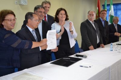 16/10/2014 Foi assinada nesta quarta-feira (15) em Chapecó ordem de serviço para elaboração do Estudo de Viabilidade Técnica, Econômica e Ambiental e o projeto básico de engenharia do corredor ferroviário de Santa Catarina, conhecida como Ferrovia do Frango. A obra é um empreendimento com 862 km que atravessará o Estado, [Leia Mais]