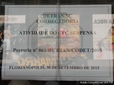 30/09/2015 O Departamento de Trânsito de Santa Catarina (DETRAN) publicou portaria nesta terça-feira (29) suspendendo as atividades do Centro de Formação de Condutores Estrela. A portaria assinada pelo diretor do DETRAN, Vanderlei Redondo, é válida para os dois estabelecimentos localizados em Joaçaba e Treze Tílias.O documento cita que a medida acautelatória [Leia Mais]