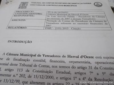 29/07/2015 O Departamento de Jornalismo da Rádio Catarinense teve acesso em primeira mão a um documento enviado por dois auditores do Tribunal de Contas do Estado, solicitando que os vereadores que fizeram parte da Câmara de Herval d´Oeste nos anos de 2006, 2007 e 2008, façam a devolução de recursos financeiros [Leia Mais]