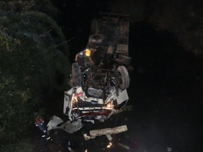 30/05/2012 Um caminhão despencou da ponte sobre o Rio Jacutinga na noite desta terça-feira (29) em Catanduvas. O acidente aconteceu por volta das 22h30 no km 411 da BR-282. Marcos Antunes, 37 anos, conduzia um Ford Cargo com placas LXR-3283 de Chapecó no sentido Vargem Bonita. Segundo informações da mulher dele, [Leia Mais]