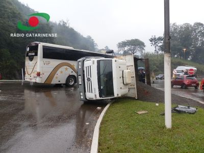 25/05/2012 Um caminhão e um ônibus de turismo colidiram na manhã desta quinta-feira (24) na BR-282 em Joaçaba. O acidente aconteceu por volta das 10h no trevo do Chocodinho. Ônibus da empresa Bampi tur, placas DAJ-098 de São Domingos (SC), conduzindo 28 passageiros, fazia sentido Litoral quando houve o choque [Leia Mais]