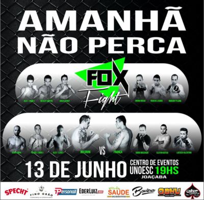 12/06/2015 Em dois dias, Joaçaba receberá a primeira edição da Fox Fight MMA, que promete ser o maior evento de luta realizado no Meio Oeste. Neste sábado (13), um octógono construído especialmente para o evento nas dimensões de 7x7metros será palco das 12 lutas com atletas de Porto Alegre, Balneário Camboriú, [Leia Mais]