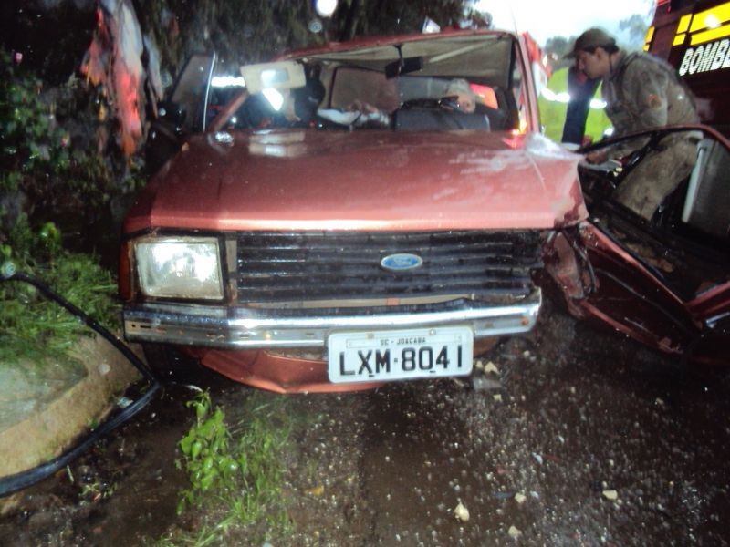 11/06/2012 Um grave acidente de trânsito deixou cinco pessoas feridas na tarde deste domingo (10) em Joaçaba. Colisão frontal envolveu um Escort e um Corcel, ambos com placas de Joaçaba. O acidente aconteceu por volta das 16h em frente ao estacionamento da empresa ADM, na avenida Santa Terezinha. Segundo testemunhas o motorista do Escort teria feito uma ultrapassagem forçada, ocasionando o choque com o Corcel. Três ocupantes do Corcel ficaram presos nas ferragens. O motorista do Escort, José Vilmar Bandeira, de 47 anos, foi o primeiro a ser resgatado pelo SAMU e Corpo de Bombeiros. Os quatro ocupantes do Corcel sofreram ferimentos graves. Maria Isabel Alves, 62 anos, Arlindo Duarte da Silva, Maria Antunes da Silva, 58 anos, e o motorista do Corcel, Ivaldir Francisco Wagner, 61 anos, que relata como tudo aconteceu: