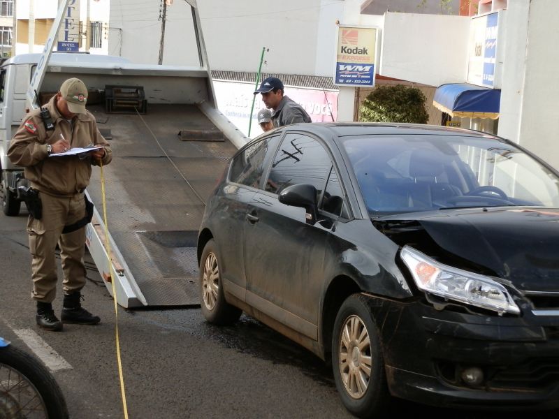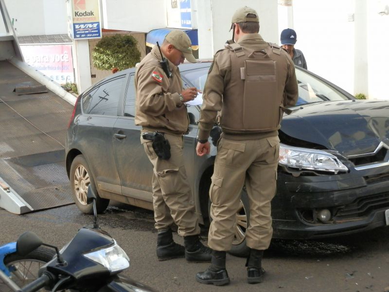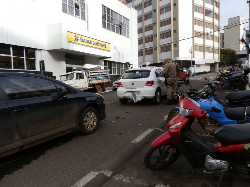12/06/2012 A Polícia Militar atendeu acidente de trânsito no centro de Joaçaba na manhã desta terça-feira (12). Por volta das 09h, colisão traseira na rua 7 de Setembro em frente ao Banco do Brasil envolveu o Gol placas MGY-6084 de Joaçaba e um Citroën placas EBN-7510 de Joaçaba. Segundo informações, o motorista do Gol, de 23 anos, freou o carro para a passagem de um pedestre na faixa de segurança, momento em que teve a traseira do veículo atingida pelo Citroën. A Polícia Militar fez o levantamento dos dados e efetuou o Boletim de Acidente de Trânsito (BOAT). Ninguém ficou ferido.
