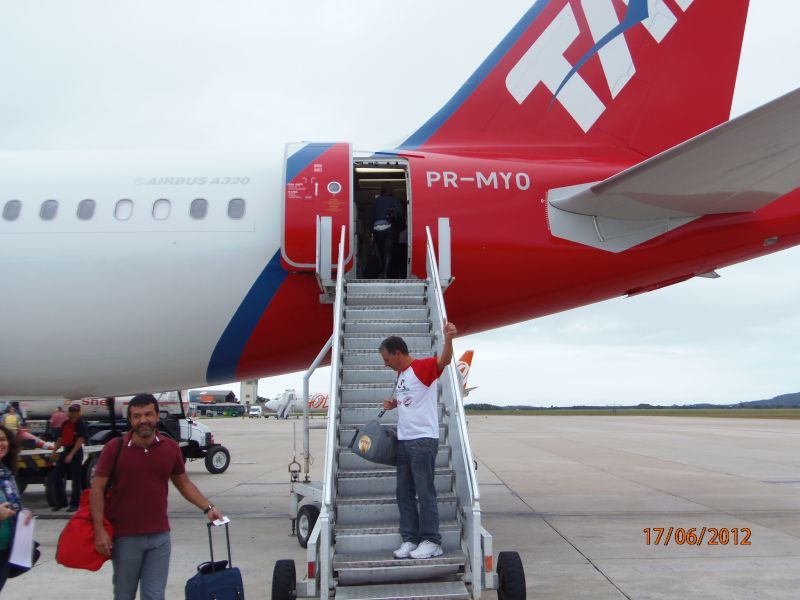 17/06/2012 Nosso aventureiro segue com destino a Índia. Silvio Duarte está em São Paulo onde no final da tarde deste domingo (17) pega voo com destino a Joanesburgo, capital da África do Sul. No embarque no aeroporto Hercílio Luz em Florianópolis o ciclista enfrentou o primeiro imprevisto da viagem. Durante inspeção da bagagem funcionários da companhia aérea não permitiram o embarque de um botijão de gás que seria usado para esquentar as refeições durante o deslocando pela Índia. Por razões de segurança, as normas internacionais determinam quais os itens que não serão tolerados no transporte aéreo. O botijão de gás é um destes itens. Por e-mail o ciclista relatou que assim que chegar na Índia vai providenciar a aquisição de um novo botijão.
