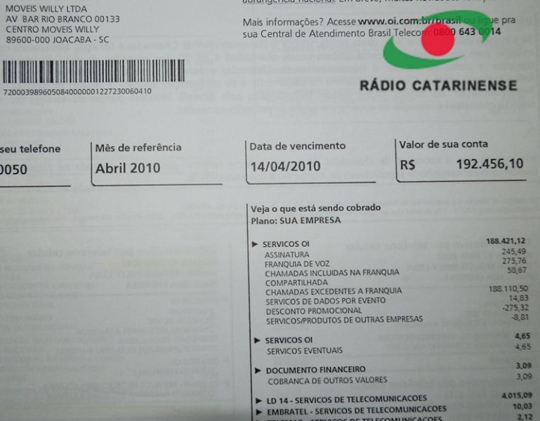 Contudo, em 24 de dezembro do mesmo ano um dos celulares da empresa foi clonado. A partir de então, começaram a aparecer faturas exorbitantes, com ligações no valor de R$ 3.300,00 (janeiro), de R$ 37.400,00 (fevereiro); em 14 de março de 2010 R$ 62.187,44; 14 de abril de R$ 192.456,10 e 14 de maio de R$ 34.846,27. “Graças à atuação forte do Procon de Joaçaba que descobriu que a dívida real era de apenas de R$ 400,00 e o problema foi solucionado. Mas o pior foi o incômodo de quatro empresas do país te ligando diariamente cobrando coisas que você não deve”, ressalta. Rudolfo Auffinger revela que recebia diariamente ligações das empresas de cobrança Malta e TNL de Fortaleza (CE), Serasa Experian de São Paulo e Velox de Salvador (BA). O empresário guarda as 158 cartas de cobranças que recebeu entre 28 de abril e 28 de maio de 2010, alegando que a dívida estaria em aberto no valor de R$ 2 mil. Ele explica que travou uma batalha na Justiça e com a colaboração paralela do Programa de Orientação e Proteção ao Consumidor (Procon) de Joaçaba, conseguiu resolver o impasse.