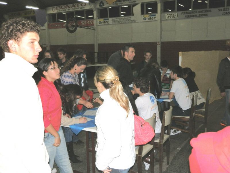 30/06/2012 Foi realizado na noite desta sexta-feira (29) no pavilhão Frei Bruno em Joaçaba, o Projeto Juventude, organizado pelo Grupo Marista. O evento reunir aproximadamente 200 jovens da região Meio Oeste. O coordenador do evento, Robinson de Vargas, ressaltou que a atividade, ligada à Igreja Católica, tem por objetivo discutir o espaço que a juventude possui na pastoral.
