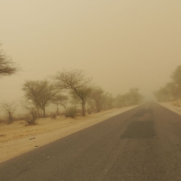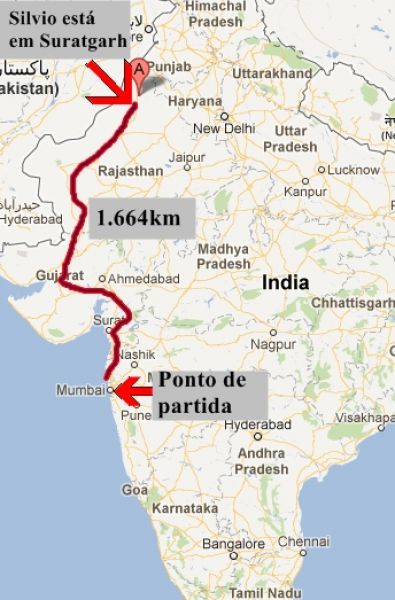"Atravessei o deserto de Rajasthan dias 8 e 9 de junho perfazendo quase 400 km e enfrentantado uma tempestade de areia, uma novidade pra mim e pra muitos ciclistas no Brasil. Tive várias queimaduras nas pernas e rosto mas tive que fazer uma kilometragem a mais para chegar a uma cidade e me refazer do cansaço e das queimaduras. Estou agora na cidade de Suratgarh, pertto do estado do Punchab, já ao norte da Índia, perfazendo um total de 1.643 de pedaladas pela Índia"