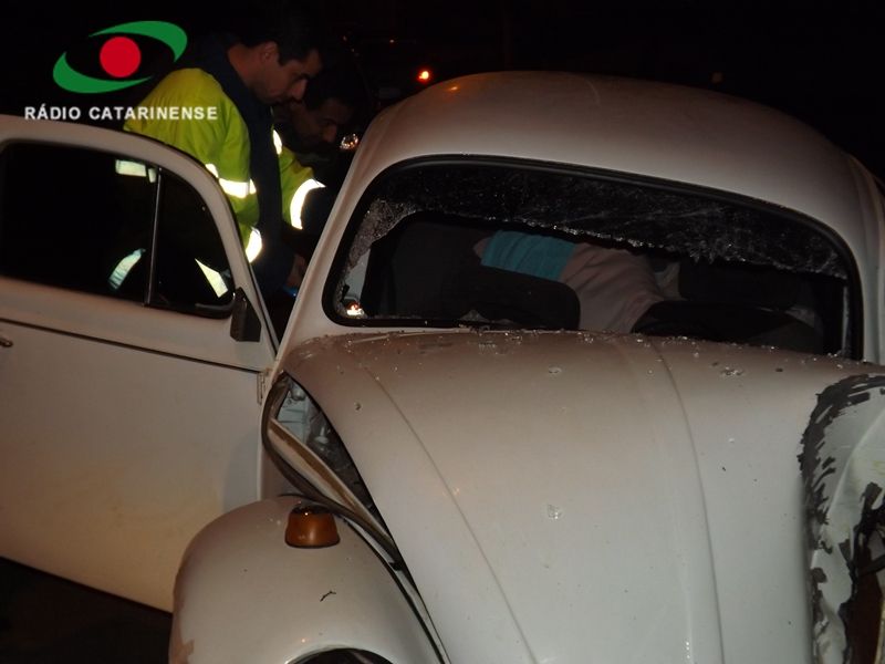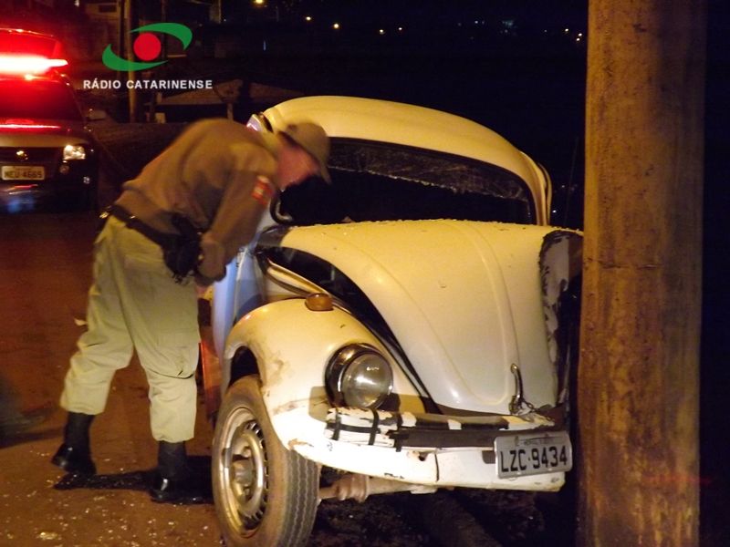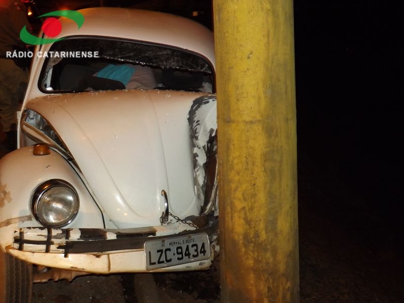 Um Fusca com placas de Herval D' Oeste, conduzido por Luiz da Conceição, 77 anos, que fazia sentido Estação Luzerna, atravessou a pista e colidiu de frente em um poste da rede de energia elétrica. O veículo ficou a poucos centímetros de cair em um barranco de aproximadamente 20 metros de altura. Abaixo do nível da estrada há diversas casas.
