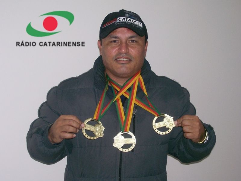 19/07/2012 O Joaçabense Paulo César Martins conquistou três medalhas de ouro no 16º Campeonato Brasileiro de Atletismo Master realizado de 29 de junho a 1º de julho em Porto Alegre (RS). A competição reuniu cerca de 300 atletas de todo o país com idade acima de 35 anos. Martins competiu no decatlo, categoria de 40 a 45 anos, onde venceu três modalidades. De passagem por Joaçaba, onde está visitando a família, o atleta contou à reportagem da Rádio Catarinense que as marcas de destaque foram no lançamento do dardo com 47 metros e no arremesso de peso com 11,54 metros. Martins revelou que havia parado de praticar atletismo, mas teve motivação após encaminhar a classificação de alguns alunos da escola em que leciona na cidade de Mafra para uma competição estadual. Ele irá permanecer mais alguns dias em Joaçaba e depois seguirá para a cidade do Planalto Norte, onde mora há três anos.