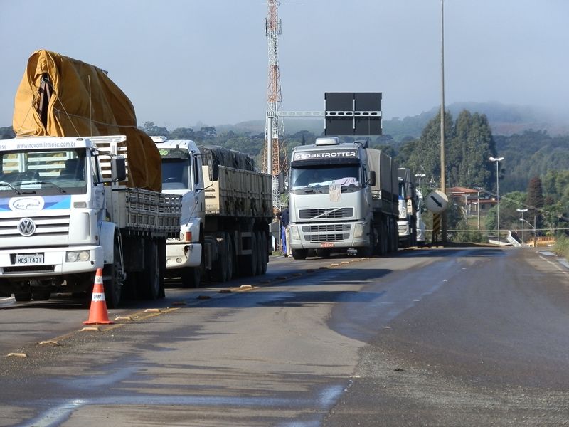 A Polícia Rodoviária Federal acompanha o protesto da categoria que reivindica a revogação de normas estipuladas pela Agência Nacional de Transportes Terrestres (ANTT). A greve dos caminhoneiros na região de Joaçaba começou no final da tarde de quinta-feira, dia 26. As paralisações continuaram na sexta-feira e no sábado. O trânsito está congestionado nos sentidos Água Doce, Vargem Bonita e Joaçaba.