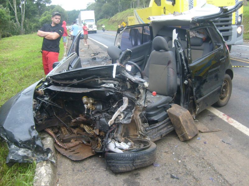04/03/2012 Três pessoas ficaram gravemente feridas e uma criança perdeu a vida em acidente por volta das 06h30min deste sábado (03) no km 126,9 da BR-116 em Santa Cecília. Colisão lateral envolvendo o caminhão Mercedes-Benz placas APK-4218 de Carlos Barbosa (RS) conduzido por Fabiano Brambila, de 30 anos, e o VW/Fox placas MED-0997 de Curitibanos conduzido por Jonas Santos Júnior, de 28 anos. O motorista do carro, bem como os caronas Maria Aparecida Alves da Silva, de 22 anos e Robson Wollinger Ferreira, de 28 anos, sofreram lesões graves. Raysla Eduarda Ferreira, de um ano, morreu no local. As vítimas são todas de Curitibanos. O condutor do caminhão nada sofreu.