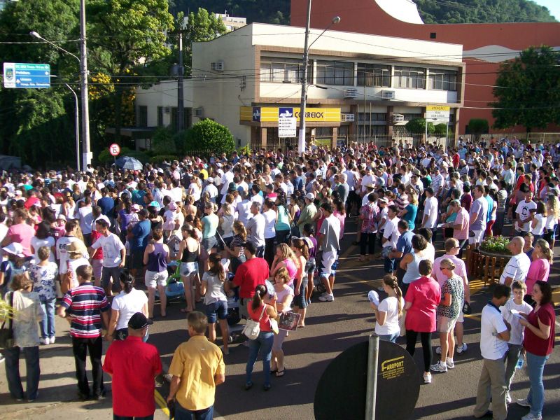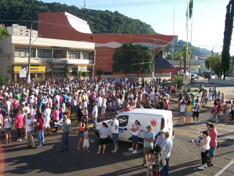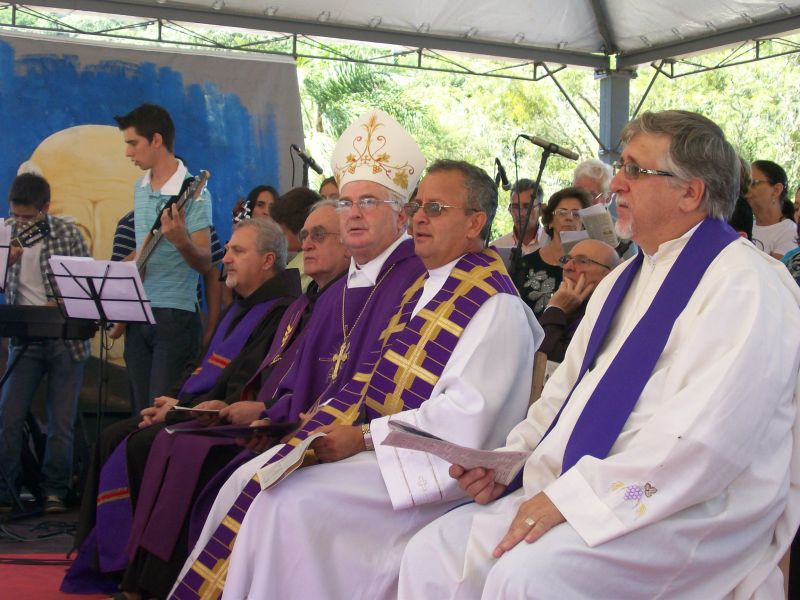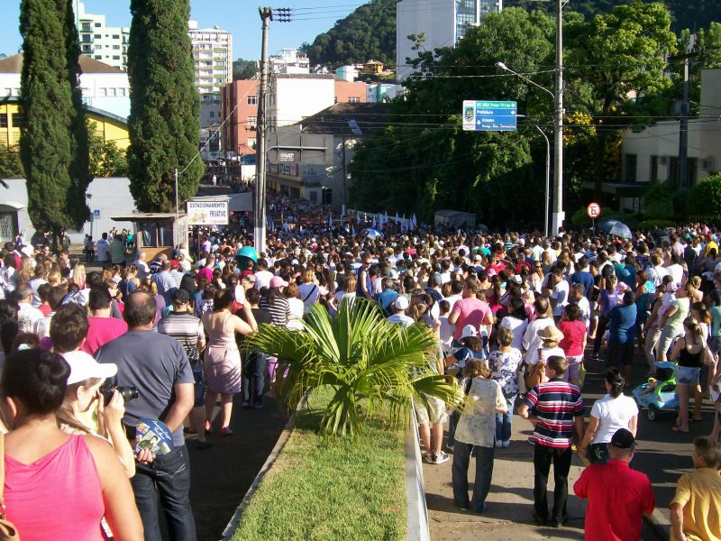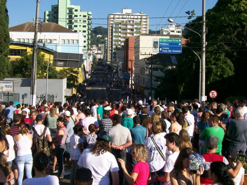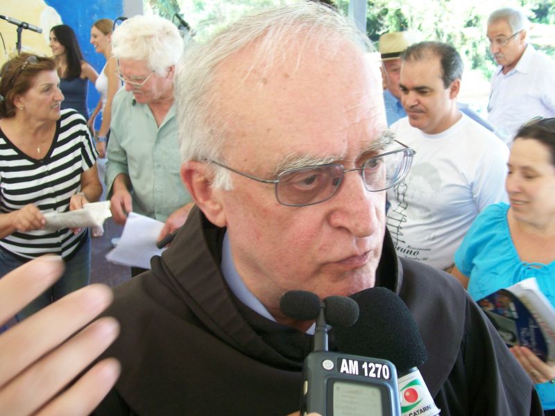05/03/2012 A 22ª edição da Romaria de Frei Bruno reuniu cerca de 60 mil fiéis na manhã deste domingo (04) em Joaçaba conforme estimativa da Polícia Militar. O tempo bom favoreceu a vinda de pessoas de outros estados e até mesmo países. A concentração partiu da catedral Santa Terezinha às 08h e seguiu em direção ao cemitério municipal Frei Edgar onde foi realizada a missa. Diversas excursões troxeram peregrinos ao evento. A romeria teve a participação do postulador da beatificação de Frei Bruno, Frei Estevão, que veio especialmente de São Paulo para acompanhar a cerimônia. Em entrevista à Rádio Catarinense, ele informou que o processo está no estágio inicial. Estão sendo reunidos documentos, depoimentos e materiais que serão anexados para serem encaminhados ao Vaticano. Já o bispo diocesano, Dom Mário Marquez, ressaltou a multidão que acompanhou a romaria, fator considerado por ele muito importante para reforçar o pleito de transformar Frei Bruno em santo. Na edição desta segunda-feira do Grande Jornal você acompanha mais detalhes sobre a romaria e o processo de beatificação.