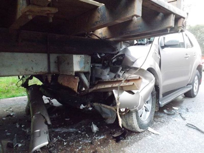 07/08/2012 Um engavetamento por volta das 17h30 desta segunda-feira (06) envolveu quatro veículos na BR-282 em Joaçaba. O acidente aconteceu próximo à entrada para Linha Abati. Segundo informações, um caminhão bitrem com placas de Ipumirim (SC) carregado de toras seguia lentamente na terceira faixa sentido Catanduvas. Atrás seguia outro caminhão com placas LZF-6844 de Catanduvas, cujo motorista perdeu a visibilidade em razão do sol e acabou batendo na traseira do caminhão carregado de madeira. Os dois motoristas foram sinalizar a pista com galhos de árvore, quando um carro fúnebre com placas FFT-7070 de Mariópolis (PR) que se deslocava de São José do Cerrito (SC) com destino à Reserva do Iguaçu (PR) também perdeu a visibilidade com o sol e bateu com a lateral nos dois caminhões. No carro fúnebre estavam o motorista, a filha e o irmão do morto que era transportado. Em seguida uma caminhonete Hillux placas MGI-0025 de Catanduvas conduzida pela prefeita Gisa Giacomin não conseguiu frear e atingiu a traseira de um dos caminhões. O irmão do falecido e a prefeita foram levados ao HUST com ferimentos leves. O impacto no interior do carro da prefeita foi amortecido pelo air-bag.