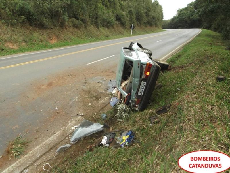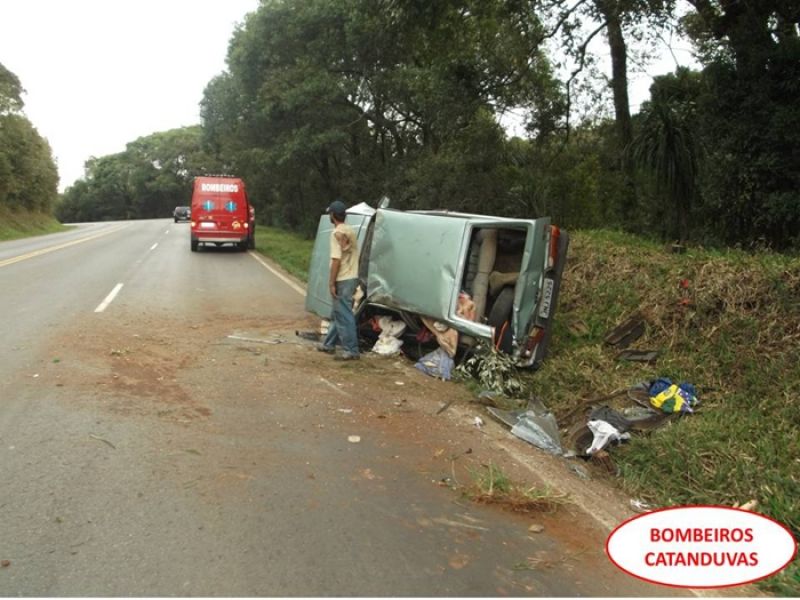 20/08/2012 O Corpo de Bombeiros atendeu na tarde deste domingo (19) por volta das 16hs, uma ocorrência de capotamento na BR-282. O acidente aconteceu próximo da Ervateira Regina. O condutor do Gol placas JNJ-5225 de Chapecó perdeu o controle do veículo e capotou. Três pessoas estavam no interior do veículo e sofreram apenas ferimentos leves. Duas pessoas foram conduzidas para atendimento no hospital de Catanduvas.