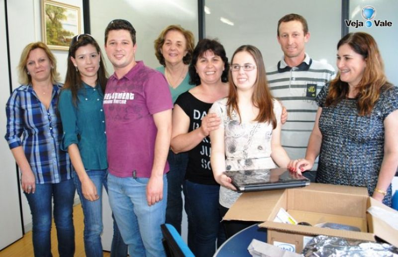 Andressa acredita que o notebook vai melhorar o seu desempenho no curso, já que o equipamento vai acompanhá-la em sala de aula. “A Unoesc oferece o sistema operacional DOSVOX em computadores do laboratório e da biblioteca, mas o notebook vai ser facilitar, principalmente, a realização dos trabalhos”, diz a acadêmica, que afirma estar gostando do curso. “Estou muito feliz, só tenho que agradecer ao doador e a Gered pelo incentivo”. A entrega foi acompanhada pelos pais de Andressa, Marli e Lúcio Bussacro, pelo irmão André e a cunhada Daiane. A gerente de Educação, Maria Carlesso Doré, e demais profissionais da Gerência de Educação também estiveram presentes no ato.