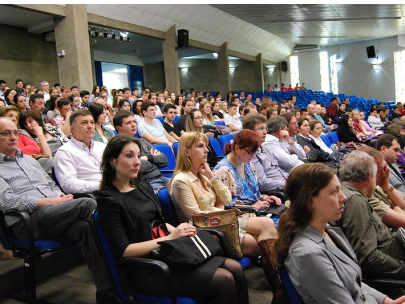 A palestra realizada durante a manhã foi ministrada pelo professor Joaquim Filipe Ferraz Esteves de Araújo, Doutor em Administração Pública e professor da Escola de Economia e Gestão da Universidade do Minho (Portugal). Focando o tema “O futuro das cidades”, o pesquisador falou sobre as grandes tendências mundiais no que tange às estratégias empresariais e governamentais; listou as que considera mais importantes e algumas estratégias alternativas para que os países possam ultrapassar seus desafios e aproveitar as oportunidades apresentadas pela grandes tendências. Também citou alguns desafios comuns a qualquer cidade, estado ou nação, como a migração populacional para o meio urbano, questões econômicas, problemas ambientais e sociais, entre outros. – As pessoas são muito individualistas. Isso tem relação com a forma como se relacionam entre si e com a forma como os governos e as empresas se relacionam com a sociedade – afirmou.