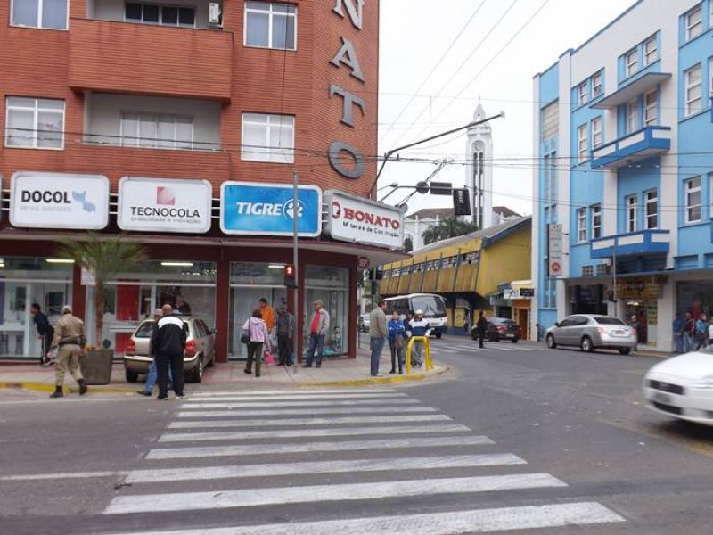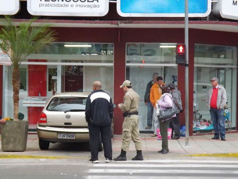27/08/2012 Um carro quase invadiu uma loja de materiais de construção após colisão na manhã desta segunda-feira (27) em Joaçaba. O fato aconteceu por volta das 08h. O choque envolveu um Gol placas IJV-2408 de Gaurama-RS, e uma Fiorino placas LYT-4966 de Joaçaba. O motorista do Gol, Luiz Rodrigues Guedes, seguia pela avenida XV de Novembro, na pista que dá acesso à Catedral Santa Terezinha. No cruzamento, ao invés de dobrar a direita, ele seguiu em frente e bateu na Fiorino conduzida por Luiz Carlos Marques, que seguia em direção à Unoesc. Marques relatou que teve a frente cortada e não conseguiu evitar a batida. O Gol invadiu a calçada e ficou a poucos centímetros de invadir a loja Bonato. Ninguém se feriu. A Polícia Militar chegou rapidamente ao local, fez o levantamento dos dados e liberou o trânsito.
