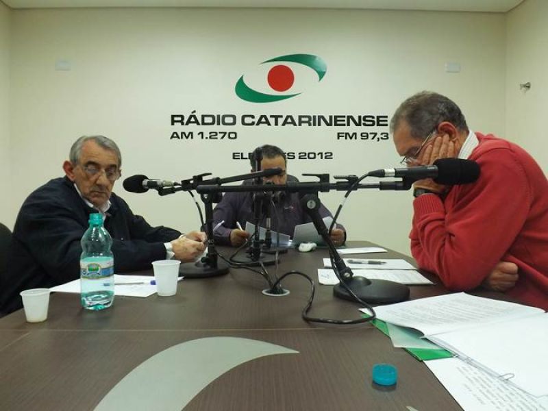 27/08/2012 Os candidatos a prefeito de Água Doce, Antônio Bissani (PP) da coligação “Continuar Crescendo” (PP/PSD) e Novelli Sganzerla (PMDB) da coligação “Água Doce Para Todos” (PT/PMDB/PSDB) participaram nos estúdios da Rádio Catarinense nesta segunda-feira (27), de mais um da série de debates que a emissora promove com os candidatos a prefeito na Ammoc. O debate iniciou às 20h. Durante uma hora e meia os postulantes ao Executivo de Água Doce tiverama oportunidade de apresentar as propostas e metas de governo.