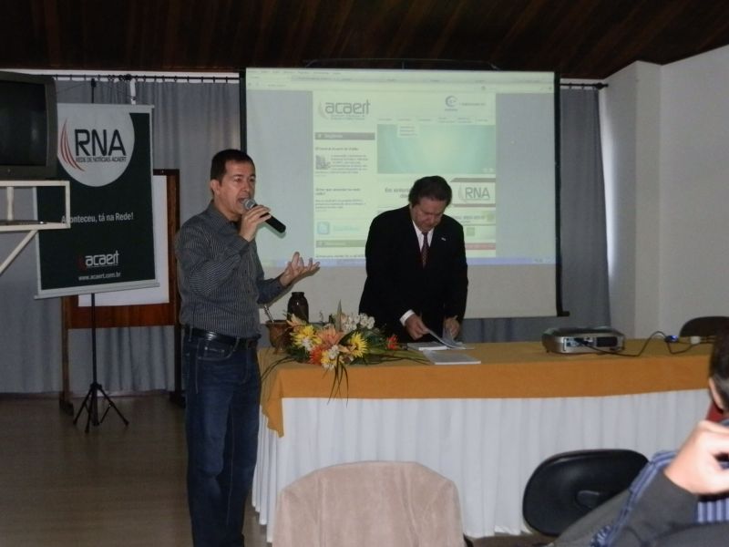 29/08/2012 A Associação Catarinense das Emissoras de Rádio e Televisão (ACAERT) e o Sindicato das Agências de Propaganda (SINAPRO) promoveram nesta quarta-feira (29) um encontro regional em Joaçaba. O evento foi realizado no auditório do hotel Jaraguá no período da manhã. Na pauta palestra com Rosa Estrella, presidente do Sinapro, com o tema “Comunicação de qualidade dá resultado”. Os associados também aproveitaram a oportunidade para tratar de questões internas das duas entidades.