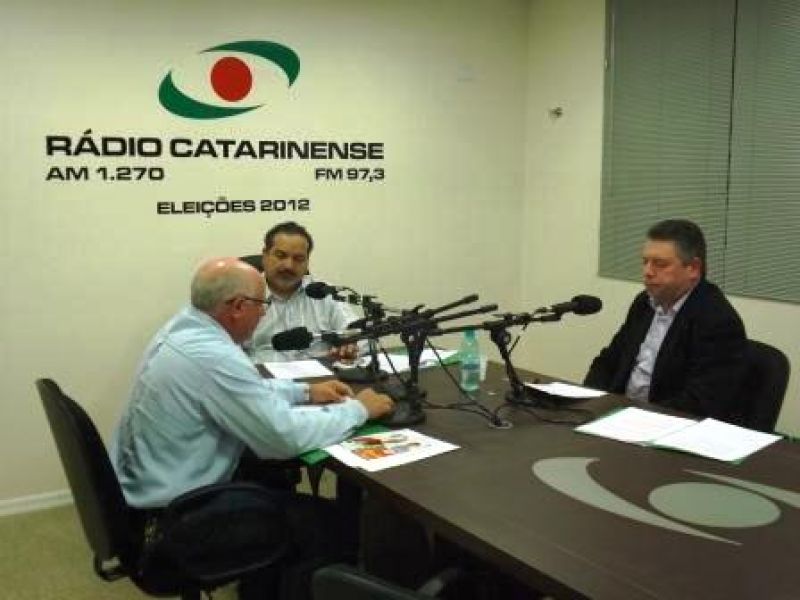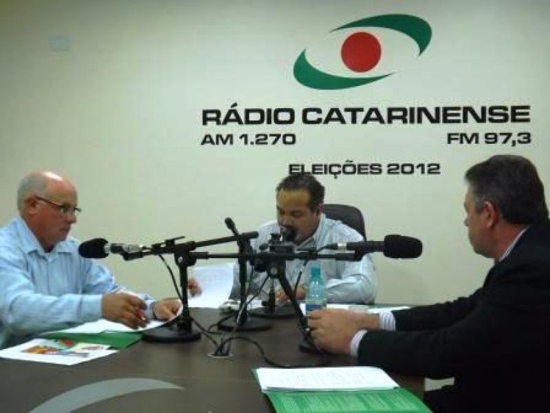 01/09/2012 Os candidatos a prefeito de Lacerdópolis, Hilário Chiamolera (PMDB), que tenta a reeleição, e Nilvo Dall'Orsoletta (PT) da coligação “Lacerdópolis Novos Caminhos” (PP/PT/PSDB), estiveram frente a frente na noite desta sexta-feira (31) debatendo propostas de governo nos estúdios da Rádio Catarinense.