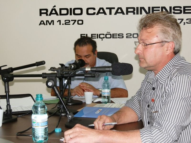 04/09/2012 Os candidatos a prefeito de Catanduvas participaram de mais um debate promovido pela Rádio Catarinense. O debate aconteceu na noite desta nesta segunda-feira (03) no estúdio da emissora na XV de Novembro com a presença de Gisa Aparecida Giacomin (PSD), da coligação “Governo Sério Trabalhando Por Você” (PP / PPS / DEM / PSD) e Silvio Ricardo Kusman, do PT, que disputa com chapa pura. Dorival Ribeiro dos Santos (PMDB), da coligação “Catanduvas Para Todos” (PMDB/PSDB), encaminhou ofício justificando sua ausência em razão de problemas de saúde. O debate durou cerca de uma hora e meia e os candidatos tiveram a oportunidade de apresentar as propostas para o próximo governo em Catanduvas. Além de responder perguntas dos ouvintes, Gisa Giacomin e Silvio Kusman trocaram perguntas em dois blocos. O próximo debate será no dia 10 com os candidatos a prefeito de Jaborá, Kleber Mércio Nora (PMDB), da coligação “Pelo Povo de Jaborá” (PMDB/PT/PTB) e Deoclécio Antonio Parisotto, da coligação “Compromisso Com o Povo” (PSD/PSDB/PP/DEM).