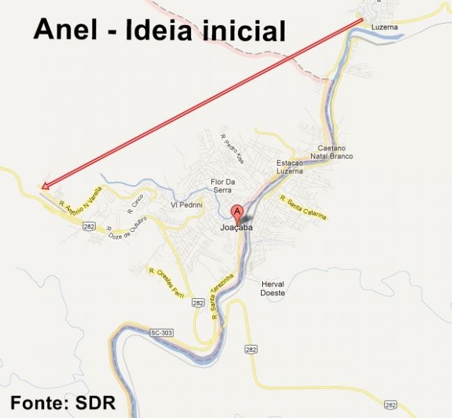 O anel viário mencionado por Murilo Flores, que ainda está em fase de estudos, a princípio sairia no acesso norte de luzerna na SC-303, passando pela SC-462, saindo no sentido Oeste de Joaçaba, nas imediações do Aeroporto.