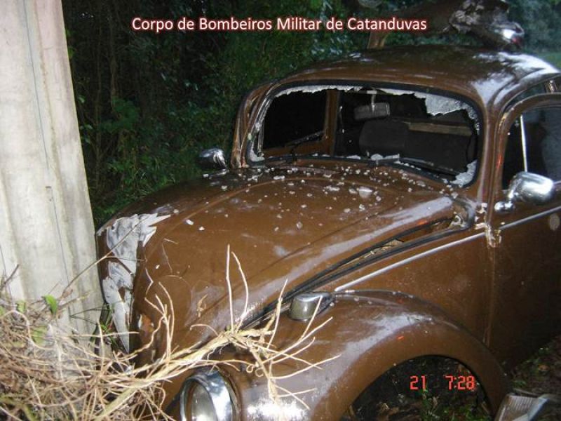 21/09/2012 O Corpo de Bombeiros de Catanduvas atendeu na manhã desta sexta-feira, dia 21, a uma saída de pista na BR-282 próximo à Curva da Pedra. Chegando ao local a guarnição se deparou com um veículo Fusca, placas de Água Doce, que saiu de pista e colidiu com um poste. O condutor de iniciais C. M. R., de 20 anos, tinha como passageiros os jovens de iniciais W. D. P. e F. L., ambos de 19 anos. As vítimas já encontravam-se fora do veículo, todos conscientes, apresentando somente escoriações. Após procedimentos pré-hospitalares, os pacientes foram encaminhados ao Hospital Universitário Santa Terezinha (HUST) em Joaçaba.