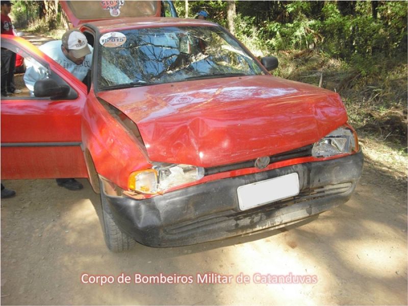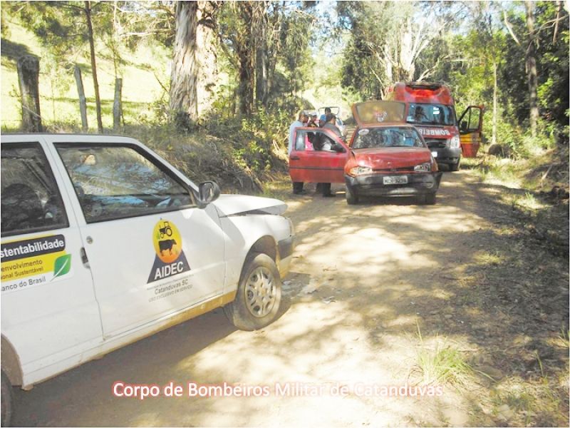 27/09/2012 O Corpo de Bombeiros de Catanduvas atendeu nesta tarde de quarta-feira (26) por volta das 14h um acidente de trânsito na estrada geral para Três Galhos. Ao chegar no local da ocorrência a guarnição se deparou com uma colisão frontal de um veículo Gol com placas de Água Doce e veículo Fiat Uno com placas de Catanduvas. O motorista do Gol, de iniciais “R. L.”, encontrava-se dentro do veículo, consciente, orientado, com sinais vitais estáveis, escoriação na região da testa e reclamando de dores na região da coluna cervical. Já sua esposa, de inicias “I. A. C.”, 21 anos, encontrava-se fora do veículo, consciente, orientada, sinais vitais estáveis, com sua filha no colo, a menor de iniciais “E. O. A. C.”, 06 anos, também consciente, orientada, sinais vitais estáveis. O motorista do Fiat Uno, de iniciais “R. C.”, nada sofreu e permaneceu no local. Após procedimentos pré-hospitalares os pacientes foram encaminhados ao Hospital Universitário Santa Terezinha (HUST) em Joaçaba.
