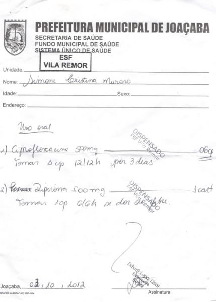 10/10/2012 A Secretaria Municipal de Saúde de Joaçaba está abrindo inquérito administrativo para investigar um fato registrado na semana que passou na unidade de saúde da Vila Remor. Sem médico no ESF, uma enfermeira emitiu receita médica com dois medicamentos para uma paciente que buscava por atendimento. A paciente usou por alguns dias a medicação conforme prescrito pela enfermeira, o problema não foi resolvido e a família fez o encaminhamento através de consulta particular.
