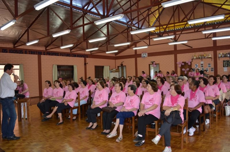 16/10/2012 O Movimento Outubro Rosa em Água Doce, que tem como tema “Declare seu amor por si mesma” reuniu nesta segunda-feira (16) mais de 100 mulheres que participaram de uma caminhada que teve início na Unidade de Saúde, seguindo pela Praça João Macagnan, Rua Frei Silvano, Avenida Independência, e término no Centro de Convivência com palestras e orientações do médico Dr. Rudinei Bertazzi Sampietro. O prefeito em exercício, Clair Antonio Gemelli, participou da abertura e enfatizou a importância das mulheres fazerem o exame preventivo, e evitar assim doenças como o câncer de mama e o câncer de colo de útero. Ele complementou dizendo que nos dias de hoje é inadmissível que mulheres morram por “descuido”. A enfermeira e uma das organizadoras do evento, Silvia Bortolini disse que a caminhada coletiva serve para sensibilizar aquelas mulheres que nunca fizeram o exame, ou que não estão com o exame em dia. Silvia complementou informando a todas que no próximo dia 20 de outubro, sábado, a unidade de saúde estará de plantão para prestar exames, orientações e paralelo a isso haverá prestação de serviços gratuito as mulheres, como corte de cabelo e manicure, como forma de incentivar a participação e conscientização nessa ação que pode salvar vidas.