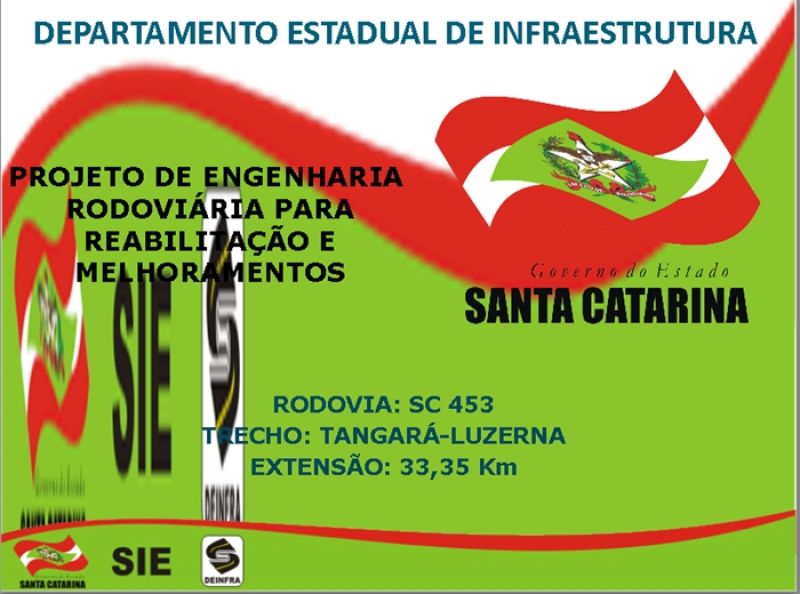 25/10/2012 O Departamento Estadual de Infraestrutura (Deinfra), apresentou ontem o projeto de reabilitação com aumento de capacidade da rodovia SC-453 (antiga 303), que liga os municípios de Luzerna e Tangará. O trecho projetado, com extensão de 33 quilômetros, prevê o melhoramento da rodovia por meio da implantação de faixas de rolamento, acostamento, faixas adicionais e faixa de uso múltiplo. Também prevê a implantação de dez interseções e a melhoria de 11 curvas consideradas pontos críticos no trecho. Todas as interferências receberam o adequado tratamento ambiental. Consultas públicas a respeito da obra foram realizadas ontem em Luzerna e Tangará.