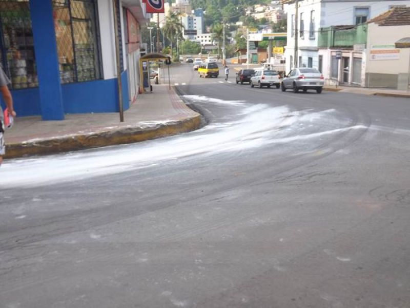 29/10/2012 O derramamento de óleo na pista causou três acidentes de trânsito na tarde desta segunda-feira (29) em Herval d' Oeste. As ocorrências foram atendidas pela Polícia Militar e Corpo de Bombeiros. Segundo informações da PM, um ônibus de uma empresa de transporte coletivo teria saído do terminal rodoviário de Joaçaba e seguindo em direção à “Volta do Maurício” em Herval. No trajeto foram espalhados diversos litros de óleo diesel do tanque do veículo. Três motocicletas que passaram no cruzamento das ruas Santa Catarina e Santos Dumont sofreram queda em decorrência do produto. Entre eles, um motociclista de iniciais F.L., de 24 anos, que pilotava uma Honda Biz placa MCC-8745 de Herval d' Oeste. O fato aconteceu por volta das 17h. Apesar de sofrer ferimentos leves, a vítima solicitou a presença da PM que efetuou o Boletim de Ocorrência, diante a intenção do condutor em acionar a empresa judicialmente. O Corpo de Bombeiros espalhou cal no asfalto para evitar novos acidentes e um possível incêndio. O ônibus não teve a placa identificada.