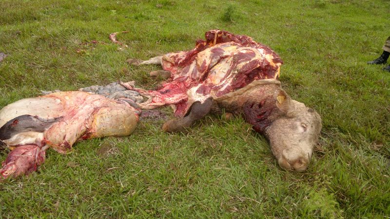 30/10/2012 Um bovino avaliado em R$ 8 mil foi sacrificado por desconhecidos em Erval Velho. O fato aconteceu na noite da última sexta-feira (26) na propriedade do ex-candidato a prefeito, Nadir Brais de Giacometti, localizada em linha São João, interior de Erval Velho. Segundo informações, os desconhecidos entraram no sítio de Giacometti e mataram a facadas um touro da raça Charolês, com aproximadamente mil quilos. Conforme o Boletim de Ocorrência (BO) registrado na Delegacia de Polícia de Erval Velho, no sábado (27), Giacometti foi acompanhar as atividades na fazenda quando sentiu falta do animal. Uma vaca foi encontrada com um pedaço de corda arrebentada no pescoço. Após vasculhar as imediações, a cerca de um quilômetro da fazenda o proprietário encontro o animal espedaçado. Conforme relato que consta no BO, esta não foi a primeira vez que pessoas desconhecidas entram na propriedade. A Polícia Civil iniciou a investigação do caso. Até o momento não há suspeitos do abigeato, ou seja, crime de furto de animais para abate no campo e fazendas.