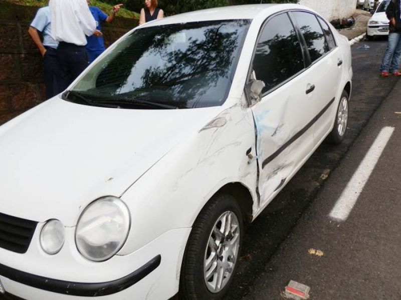 01/11/2012 Um acidente foi registrado por volta das 07h30 desta quinta-feira (01) na rua Tiradentes, próximo à esquina da empresa Hisa/Weg em Joaçaba. Colisão envolveu três veículos, VW/Polo placas MGI-7282 de Joaçaba, GM/Celta placas MCW-8773 de Monte Carlo e motocicleta Yamaha placa MEU-8077 de Joaçaba. Segundo as informações o Polo fazia sentido delegacia de Polícia/Vila Pedrini, e ao efetuar uma manobra para estacionar no sentido contrário, o motociclista fez uma ultrapassagem em alta velocidade colidindo na lateral do carro. Com o choque a moto atingiu o Celta que estava estacionado. A moto foi parar na calçada.