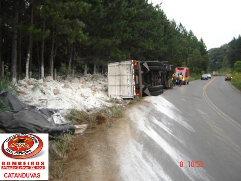 Às 18h40 a guarnição se deslocou até o km 28 da SC-454 em Água Doce. Saída de pista seguida de tombamento envolveu a carreta Volvo placas MDT-7524 de Treze Tílias, de propriedade da empresa Tirol, que estava carregada com leite em pó. Chegando ao local a guarniação constatou que o condutor não estava mais no local. A Polícia Militar Rodoviária de Ibicaré também atendeu a ocorrência.