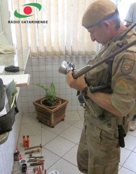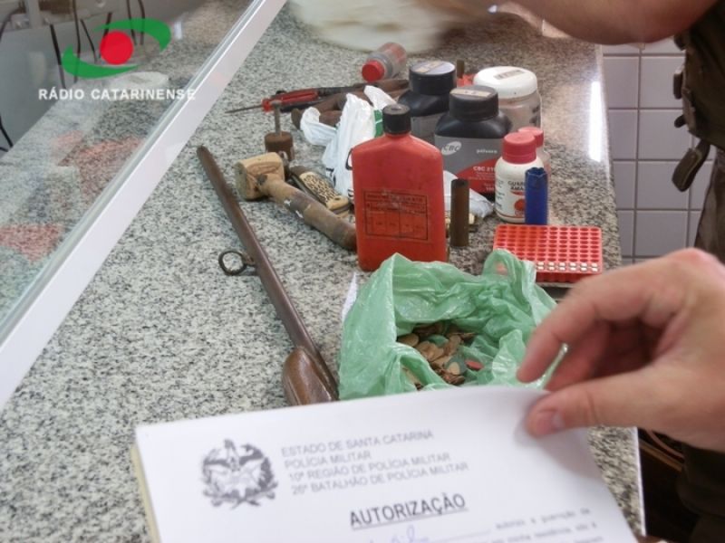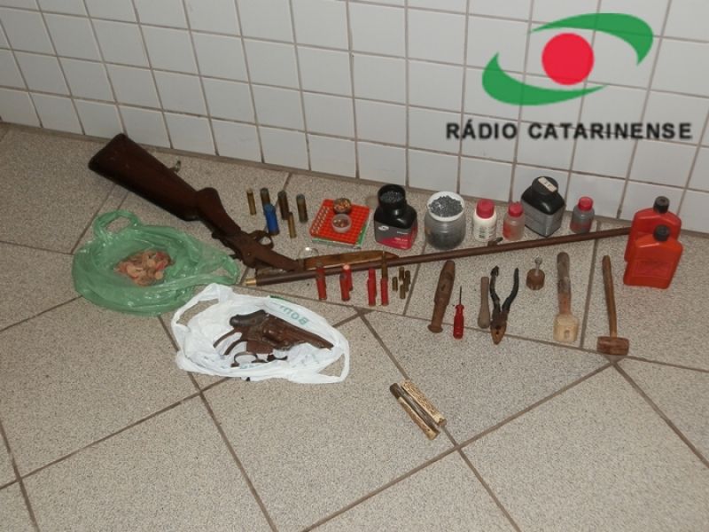 20/11/2012 Às 12h43 desta terça-feira (20) a Central de Operações da Polícia Militar (COPOM) recebeu a ligação de uma mulher desesperada dizendo que o companheiro estava tentando matá-la. Imediatamente o COPOM destacou quatro viaturas incluindo o Pelotão de Patrulhamento Tático (PPT) até a linha Caraguatá em uma propriedade às margens da SC-303, km 6, próximo à ponte sobre o Rio Caraguatá no limite com o município de Lacerdópolis. No local os policiais se depararam com a vítima, de iniciais C.A.S., de 26 anos, o acusado por ela, de iniciais R.F.G., de 32 anos, e o filho do casal de apenas 50 dias de vida. Na casa a PM apreendeu uma espingarda calibre 36, um revólver calibre 38 desmontado, munições de diversos calibres e apetrechos para recarregar munição, além de materiais para caça.