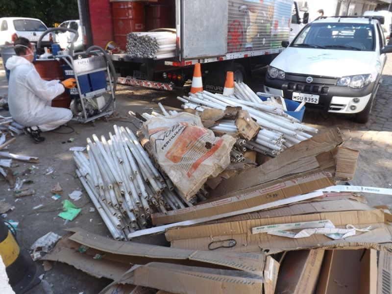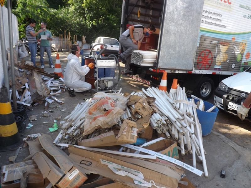 22/11/2012 Um dos descartes de resíduos sólidos mais preocupantes para o meio ambiente é o das lâmpadas fluorescentes, pois elas são altamente tóxicas e não podem ser jogadas no lixo comum. O correto é levar para uma loja que vende lâmpadas, como, por exemplo, lojas de material de construção, onde deve existir um ponto de coleta. De lá, as lâmpadas são encaminhadas para fábricas que fazem a descontaminação. Primeiro, elas são classificadas por tamanho. Depois, são retiradas as peças em metal, que são encaminhadas para fundições. Em seguida, a lâmpada é triturada.