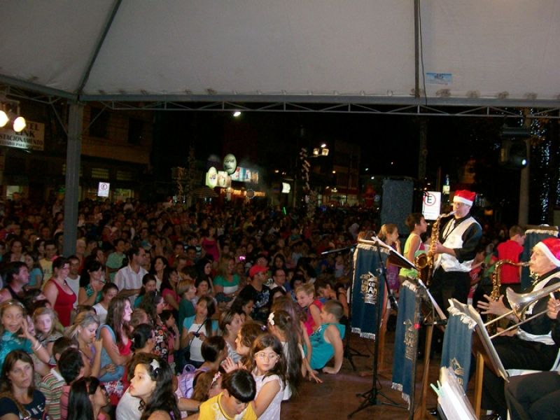 27/11/2012 O espírito natalino, que proporciona magia e encanto para as crianças todos os anos, está povoando novamente as ruas de Joaçaba. Com condições climáticas favoráveis, já que na última sexta-feira o evento havia sido adiado, a Câmara dos Dirigentes Lojistas (CDL) promoveu na noite desta segunda-feira (26) a solenidade de abertura do Natal Encantado 2012. A programação foi desenvolvida na praça Adolfo Konder em frente a prefeitura num palco instalado especialmente para o evento. A chegada do Papai Noel foi um dos principais momentos da programação. A CDL também inaugurou oficialmente a Vila Encantada e promoveu o acendimento das luzes. Para encerrar a noite em grande estilo, um show com a Carlos Gomes Big Band. Até o Natal um Trenzinho estará transportando as crianças de forma gratuita na praça da prefeitura.
