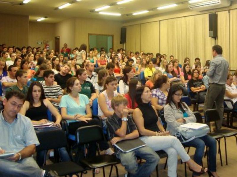 12/03/2012 Alunos do Curso de Ciências Contábeis da Unoesc/Joaçaba assistiram à palestra “Alternativas, Perspectivas e as Novas Oportunidades para o Profissional da Contabilidade”, ministrada pelo professor Roberto Aurélio Merlo. A palestra foi promovida no dia 2 de março pelo curso de Ciências Contábeis e o Conselho Regional de Contabilidade (CRC). Durante a palestra, os acadêmicos das turmas de primeira e terceira fases receberam informações importantes sobre a profissão contábil, sobre as perspectivas de mercado e áreas que apresentam carência de profissionais e, ainda, a respeito da importância do profissional no processo de gestão das empresas. – Foi uma grande oportunidade para os alunos ingressantes conhecerem um pouco mais da profissão e de suas perspectivas. Este ano o curso de Ciências Contábeis teve o ingresso de 110 novos acadêmicos no curso, os quais estão divididos em duas turmas – diz o coordenador do Curso, Maurício de Jesus Cevey.