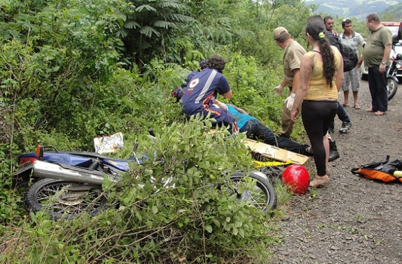09/12/2012 Cristiano Batista dos Santos, 24 anos, ficou gravemente ferido após perder o controle de uma moto Honda na SC 455. Juntamente com Cristiano estava a sua esposa Daniela Cristina Silva, 24 anos, que sofreu apenas ferimentos leves. A saída de pista ocorreu por volta das 13h30 deste sábado (08) no Km 225,em Ibicaré. Garoava no momento do acidente. De acordo com Daniela, o casal, que é de Videira, fazia o trajeto Tangará sentido Ibicaré, quando o condutor de um automóvel freou bruscamente à frente da moto. Cristiano tentou desviar da colisão, vindo a derrapar na pista molhada. O casal deslizou por mais de10 maté parar na vegetação do outro lado da pista. Cristiano que apresentava várias escoriações pelo corpo foi atendido e em seguida encaminhado pelo Samu de Tangará até ao Hospital Universitário Santa Terezinha (HUST) de Joaçaba, com suspeitas de fraturas. Daniela, com menos gravidade, recebeu os primeiros socorros no local. Também atenderam a ocorrência as Polícias Militar e Rodoviária, ambas de Ibicaré.