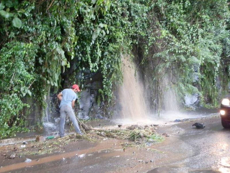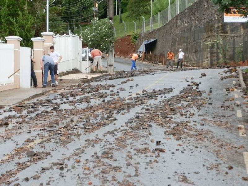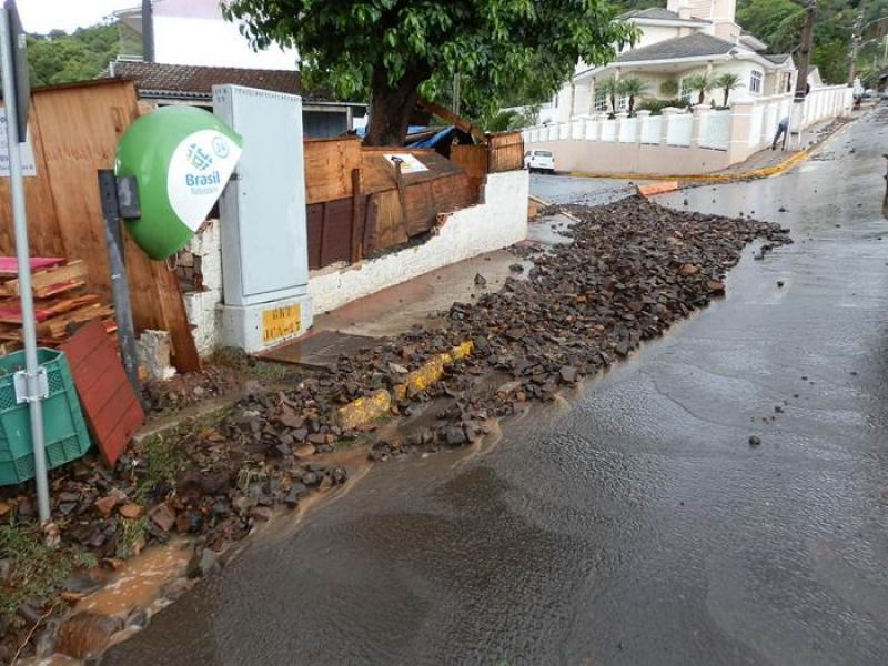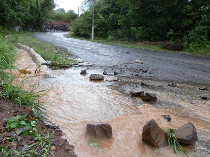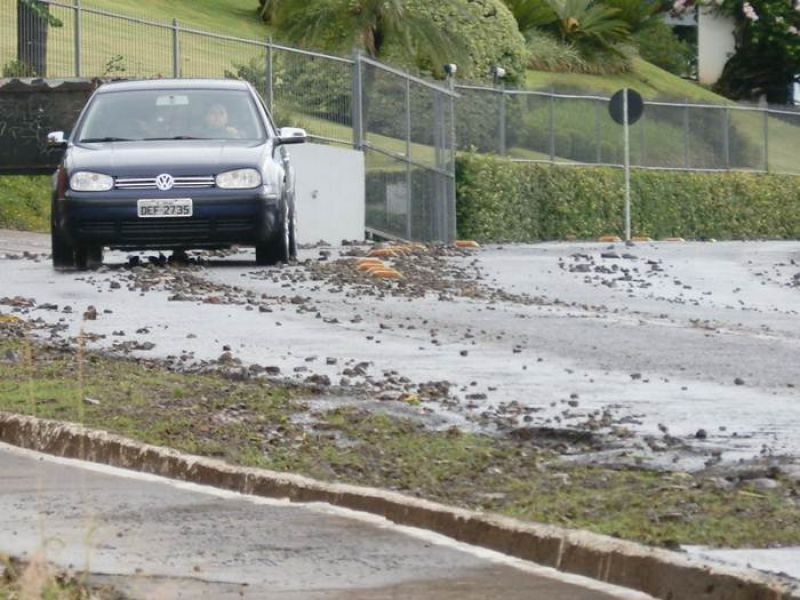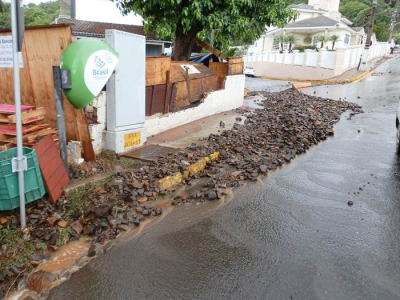 18/12/2012 Em poucos minutos, o dia praticamente ficou noite. Os faróis dos veículos precisaram ser acessos. Foram apenas 15 minutos de chuva torrencial por volta das 15h30 desta terça-feira (18), mas suficientes para causar diversos transtornos a motoristas e moradores, principalmente dos bairros da Cidade Alta em Joaçaba. A força da chuva reduziu drasticamente a visão dos motoristas e fez com que uma enxurrada obstruísse bueiros e algumas ruas, como nos acessos à Vila Pedrini, Acesso Adolfo Zigueli, bairros Anzolin, Boa Vista e Monte Belo. Na rua Ari Rodrigues Maia foi necessário desviar o trânsito devido ao acumulado de pedras e entulhos num volume de aproximadamente 30 centímetros de altura. Equipes da Prefeitura auxiliados por voluntários fizeram um mutirão para limpeza de ruas, calçadas e bocas-de-lobo. Em alguns trechos do acesso Adolfo Zigueli o volume de água transformou o barranco em cachoeiras. A Polícia Militar foi solicitada para orientar o trânsito. O trecho ficou intransitável para os motociclistas que tiveram que pegar outro acesso ou aguardar a retirada do entulho. Os problemas maiores foram na entrada do bairro Nossa Senhora de Lourdes, do novo terminal rodoviário e nas imediações da empresa Pegoraro,e ainda na rua Tiradentes. Foi registrada também pequena precipitação de granizo.