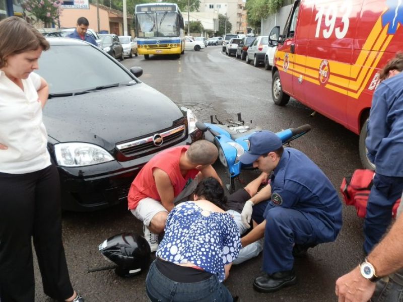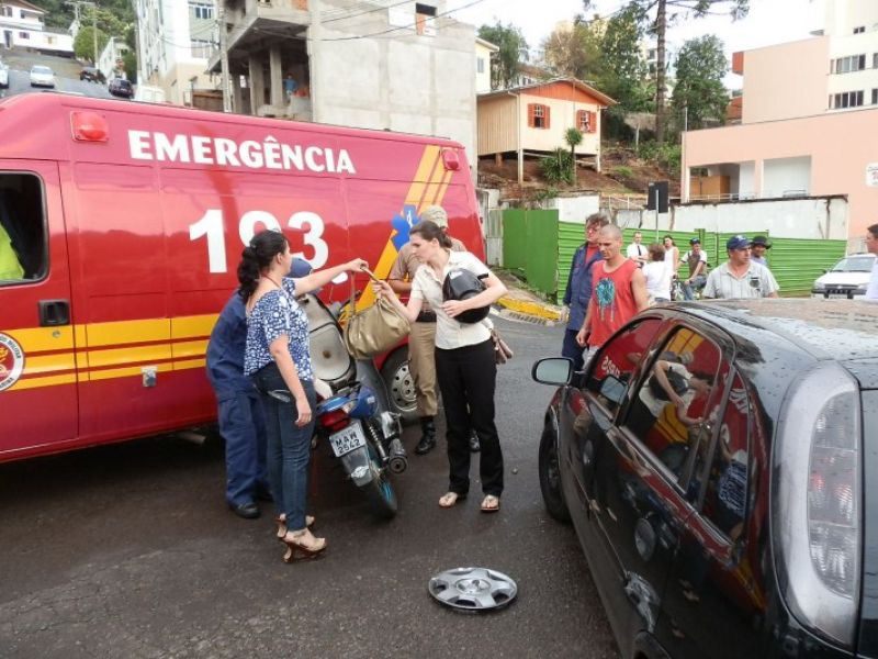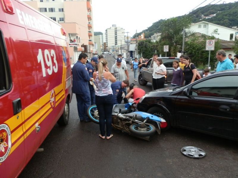 19/12/2012 A Polícia Militar atendeu no final da tarde desta quarta-feira (19) dois acidentes de trânsito na área central da cidade de Joaçaba. O primeiro acidente foi uma colisão envolvendo uma Moto Biz, placas MAW 2542 de Joaçaba e um Corsa, placas MIA 1677 também de Joaçaba. A moto atingiu o Corsa que estava saindo do estacionamento na rua Felipe Schimidt. A motociclista foi conduzida ao setor de emergência do HUST com ferimentos leves.
