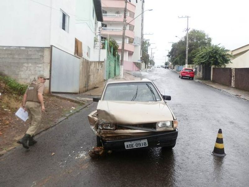 21/12/2012 A Polícia Militar foi solicitada para atender a um acidente de trânsito por volta das 14h30 desta sexta-feira em Herval d' Oeste. A ocorrência aconteceu no cruzamento das ruas Rui Barbosa e São João. Colisão envolveu um veículo VW/Fox placas de Herval d' Oeste, conduzido por N.Z., de 62 anos, e um VW/Gol com placas de Lacerdópolis conduzido por Luiz Eduardo de Oliveira, de 23 anos. Segundo informações da Polícia Militar, antes de bater na lateral direita do Fox, o Gol havia colidido contra um poste da rede elétrica, provocando danos consideráveis no veículo. O carro foi parar a cerca de 150 metros do local da batida.