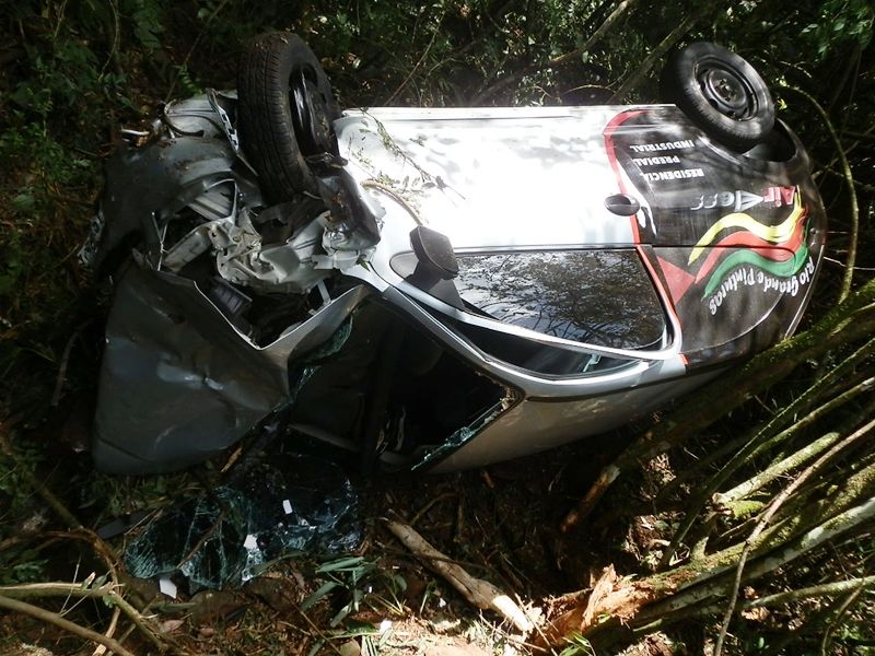 26/12/2012 Um grave acidente de trânsito foi registrado por volta das 14h desta quarta-feira (26) no acesso Egídio Pozzobon em Herval d”Oeste. Um Celta com placas de Tupanci/RS saiu da pista e capotou numa curva próximo ao Distrito Industrial II. O veículo ficou praticamente destruído. O motorista Éder Marchiori, 25 anos, informou que perdeu o controle do veículo. Ele foi conduzido ao Hospital Universitário Santa Teresinha de Joaçaba com ferimentos pelo corpo.