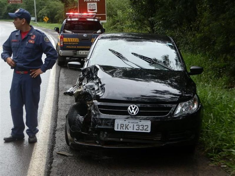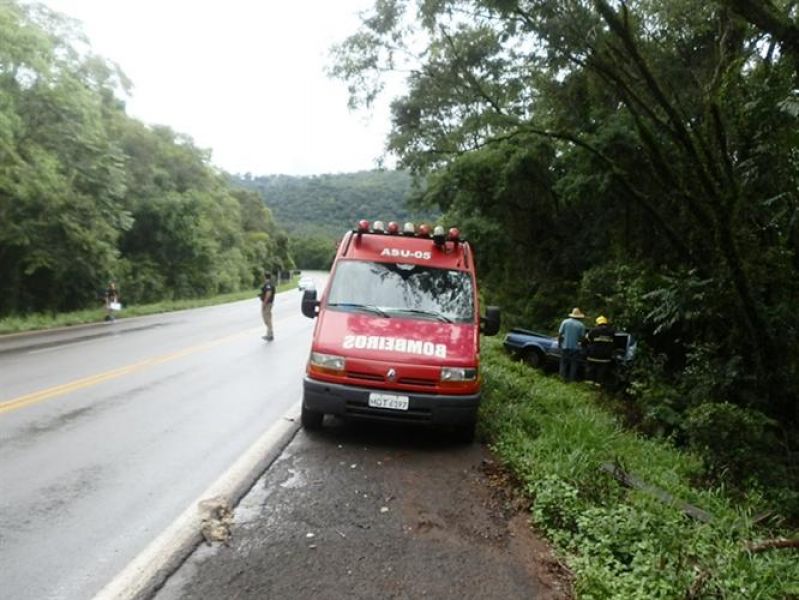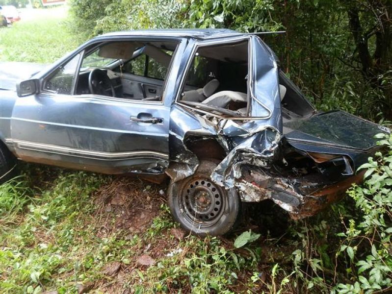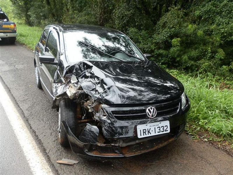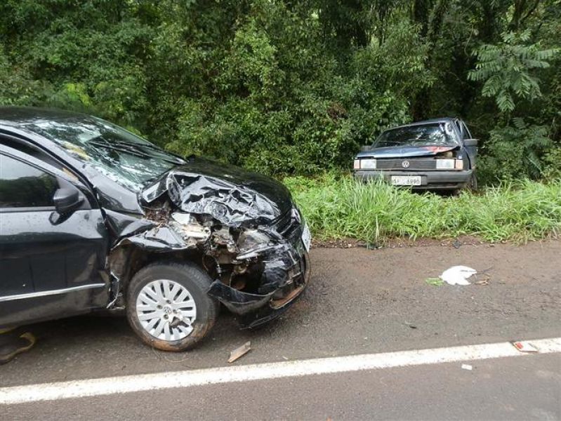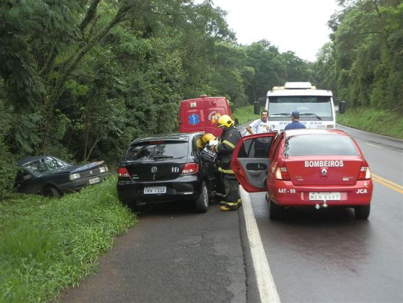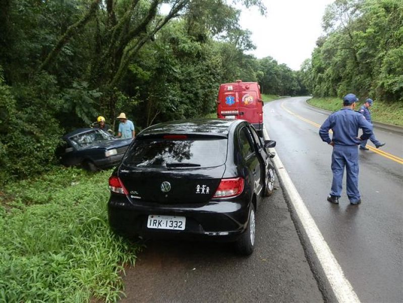 29/12/2012 Um acidente no início da tarde deste sábado (29) deixou duas pessoas levemente feridas na BR-282 em Joaçaba. Colisão no mesmo sentido registrada por volta das 12h45 no km 389 da rodovia, próximo ao trevo do Chocodinho, envolveu um Gol placas IRK-1332 de Erechim (RS) conduzido por Itamar Azambuja, de 29 anos, e um Santana placas AFQ-6990 de Zortéa, que estava parado no acostamento. De acordo com o motorista do Santana, de iniciais C.J., de 30 anos, ele havia saído de Irani com destino a Zortéa, quando parou no acostamento para esperar a chuva forte passar. Instantes depois sentiu o impacto na traseira do carro. O Corpo de Bombeiros conduziu com escoriações ao Hospital Universitário Santa Terezinha (HUST) de Joaçaba duas mulheres, sendo mãe e filha. Elas estavam no banco traseiro do Gol. A proprietária do veículo que estava na carona, bem como os condutores não sofreram ferimentos. A Polícia Rodoviária Federal (PRF) fez o levantamento dos dados e orientou o trânsito, que ficou lento por cerca de uma hora até a chegada do guincho. O teste do bafômetro deu negativo nos motoristas.
