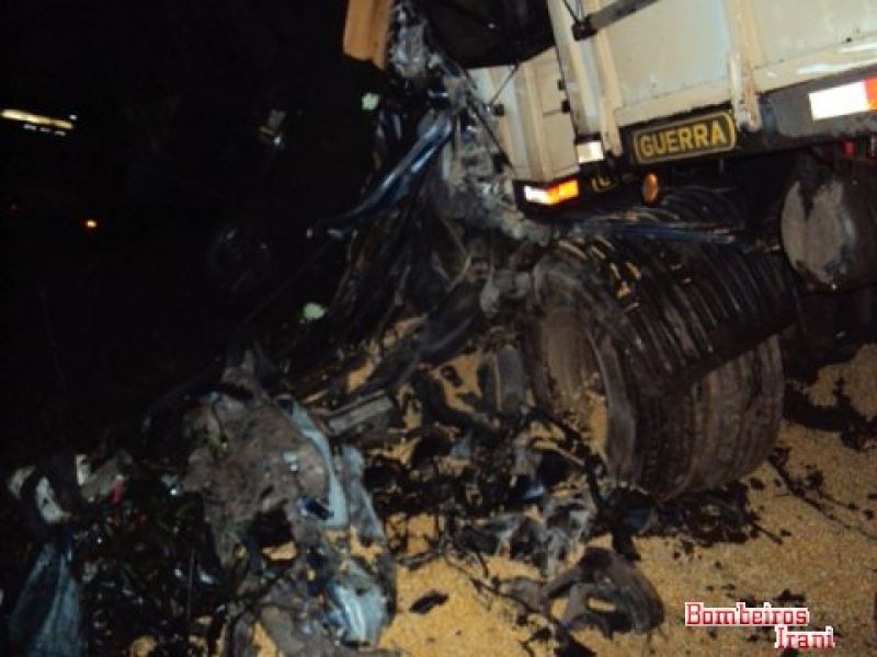 31/12/2012 Por volta das 20h30 deste domingo (30) um acidente de trânsito matou uma pessoa no km 62 da BR-153 em Irani. Colisão frontal envolveu um Ford Versailles com placas LZB-8586 de Ponte Serrada e uma carreta Iveco bitrem (cavalo mecânico placa MEY-5807 de Catanduvas e bitrem com placas de Vargem Bonita). Com o impacto ambos os veículos saíram da pista. No carro estava apenas o condutor, de iniciais I.P.M., de 39 anos, que teve morte instantânea. A vítima ficou presa nas ferragens e foi resgatada pelos bombeiros voluntários de Irani. O condutor da carreta, de iniciais C.R.O., de 24 anos, estava sozinho no veículo e nada sofreu. O corpo foi encaminhado para o Instituto Médico Legal (IML) de Concórdia.